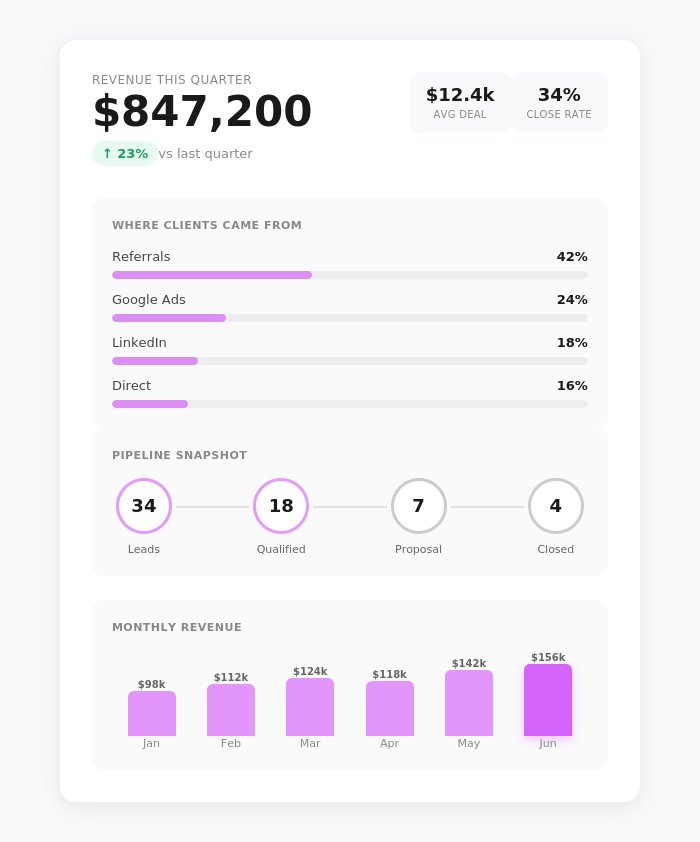 Not another marketing campaign. Not more tactics. A complete revenue system that shows you exactly where clients come from so you can scale the right things and cut the wrong ones.